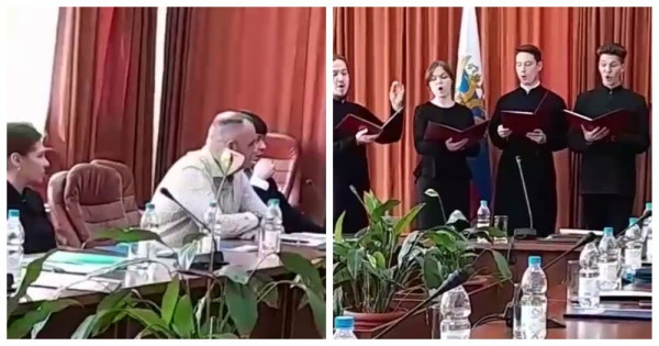 В филиал Российской академии народного хозяйства и госслужбы (РАНХиГС) приехали семинаристы. Они поздравили руководство института с этим праздником и провели пасхальные песнопения перед учёным советом вуза.Кто-то из коллектива снял это на видео и выложил в сеть:Позже ректор РАНХиГС Олег Гущин сообщил, что у руководителя местной духовной семинарии есть такая традиция - приезжать с поздравлениями в другие вузы. Но обычно он общался только с ректором, а в этот раз семинаристы решили выступить перед всеми сотрудниками. Гущин подчеркнул, что это разовый случай в честь праздника, а так в институте перед работой не молятся и не поют.Бывает, что приезжает с семинаристами на Пасху, бывает, приезжает на Рождество, но это всегда такая частная инициатива. На 15 минут они пришли и спели. Там не только пасхальные были, там были просто песни, про Родину и так далее.Мы такие вещи - песнопения, открытие заседаний учёного совета с молитвами - такого у нас нет в принципе, у нас не культивируется, у нас никаких молитв не произносится. Это вот просто такой частный случай.