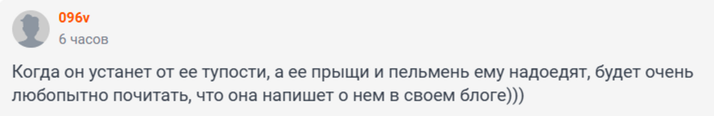 Но аудитория американского блогера указывает ему в комментариях, что он слегка промахнулся с выбором спутницы:Еще одна типичная цыпочка с сайта для взрослых.Ох, она так мило притворяется, что ты ей нравишься, потому что ты богат.Ну а Гроссман говорит, что это пишут мелкие людишки, которые завидуют чужому счастью. А в будущем - не исключает брак с блогером и переезд в США. В наших соцсетях считают, что это и к лучшему - пусть едет. Устраивает пляски на шоссе и критикует мужчин, которые почему-то не хотят выполнять её капризы и "обесценивают".