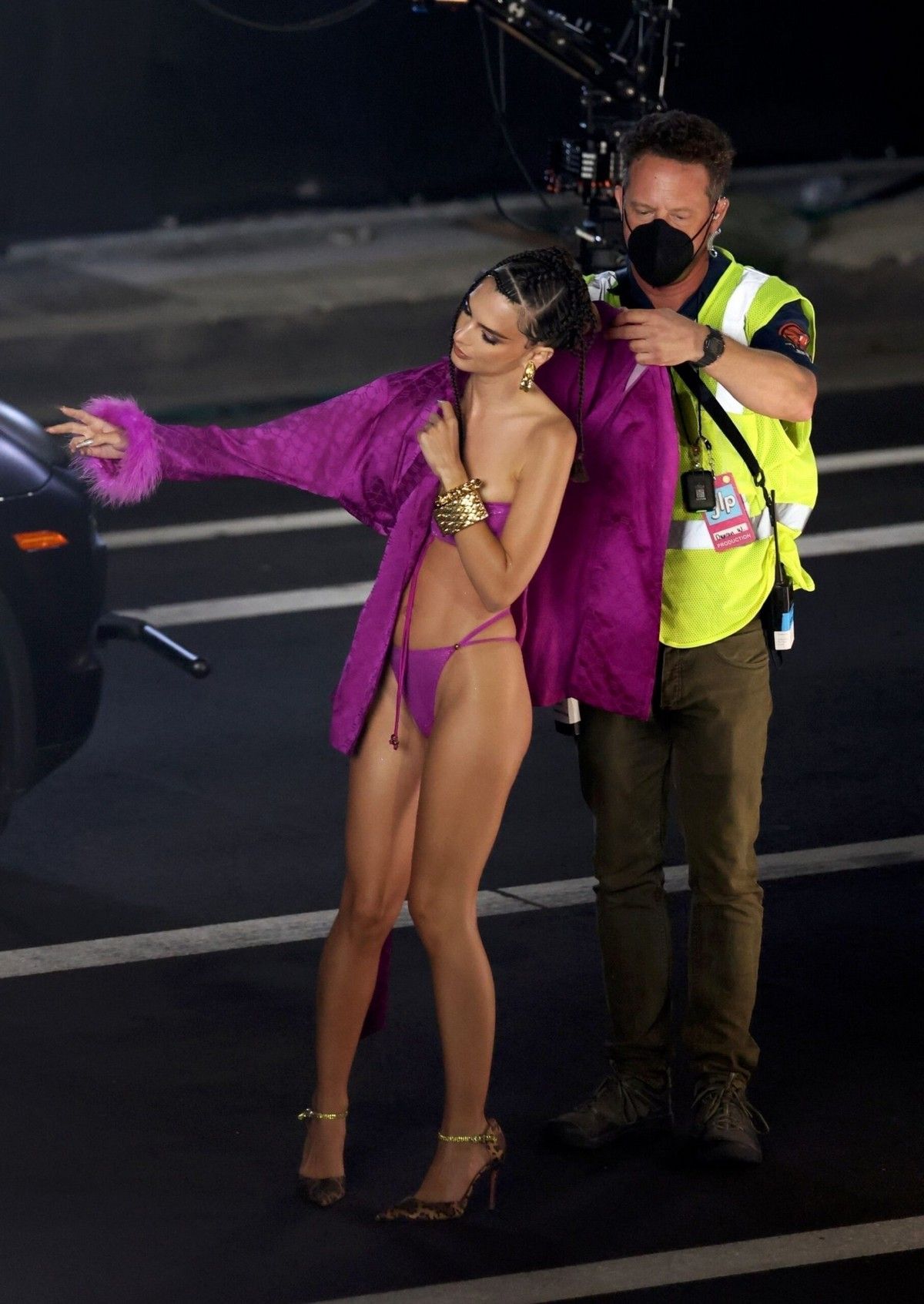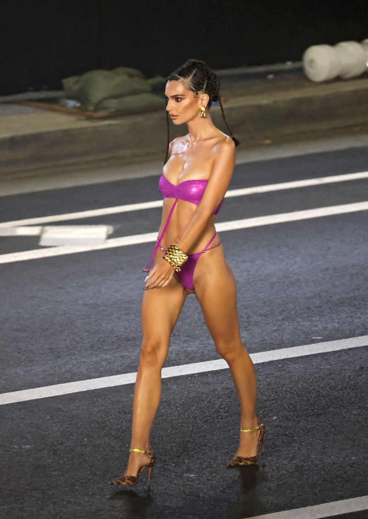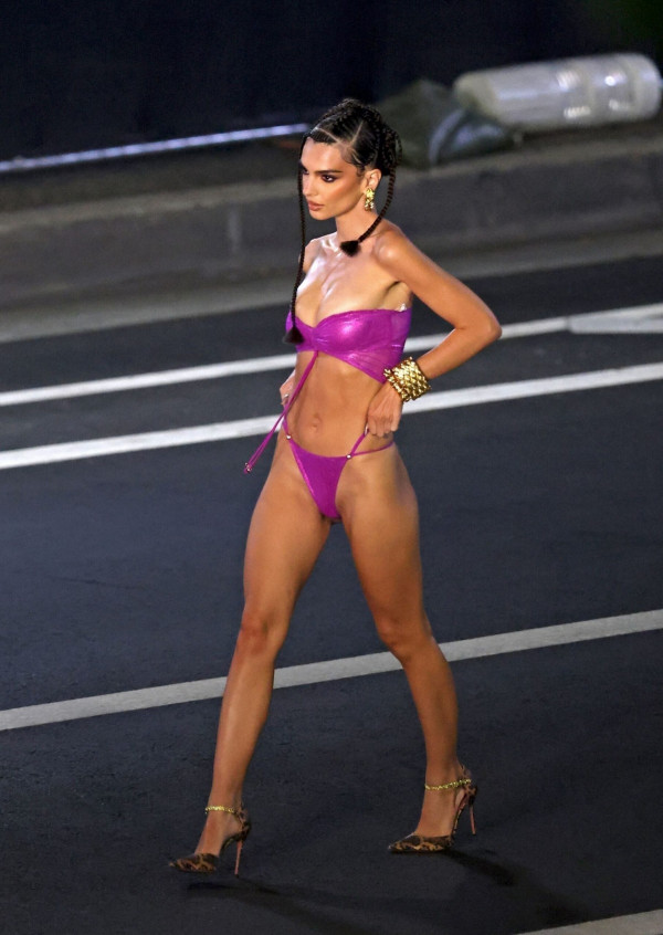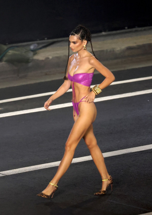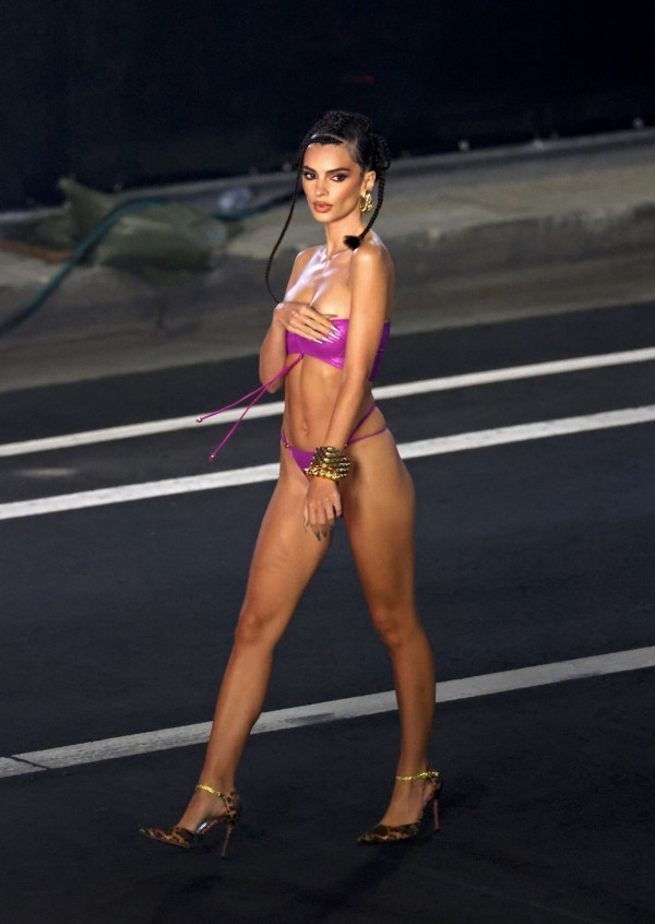 30-летняя американская модель и актриса Эмили Ратаковски (Emily Ratajkowski) в бикини на шоу Рианны Savage X Fenty в центре Лос-Анджелеса.