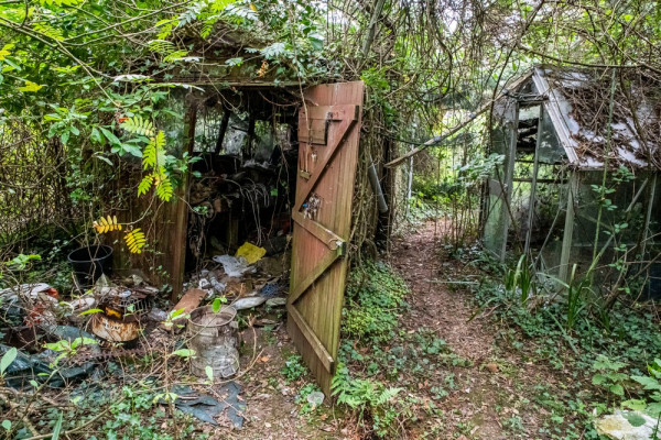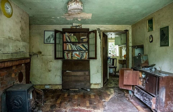 Заброшенный дом с тремя спальнями, покрытый подлеском в отдаленной лесной местности и все еще загроможденный вещами десятилетней давности, был выставлен на аукцион за 275 000 фунтов стерлингов.
