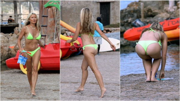 49-летняя американская модель, актриса и бизнесмен Каприс Буре (Caprice Bourret) в бикини на пляже Ибицы.