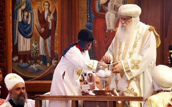 В Коптской православной церкви (христианская церковь Египта) Папу избирают через сакральный жребий. Совет священников отбирает 3 финалиста, их имена помещают в серебряный кубок, а ребёнок с завязанными глазами вытягивает одно имя - это считается Божьим избранием. Последний раз ритуал проводили в 2012 году при избрании Папы Тавадроса II. Полностью титул коптского папы звучит так - Папа Александрийский и Патриарх Престола святого Марка во всей Африке и на Ближнем Востоке.