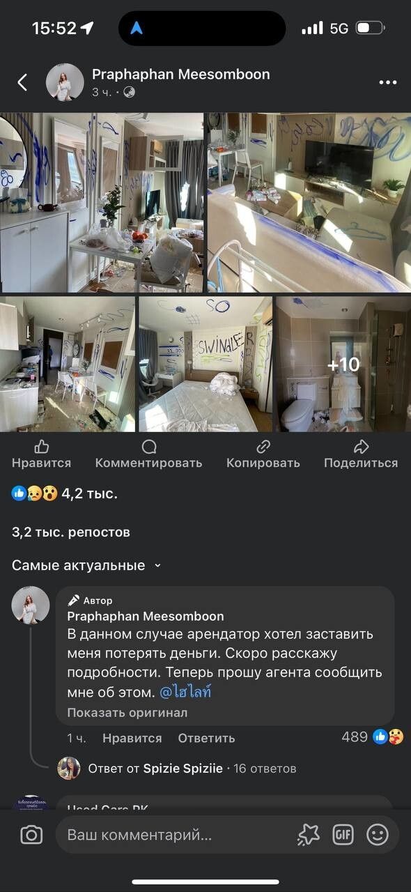 Владелица недвижимости уже обратилась с заявлением в полицию. Она хочет, чтобы правоохранители нашли и заставили заплатить эту квартиросъемщицу за весь тот ужас, который она оставила после себя. В конце концов, женщине придётся изрядно потратиться, чтобы привести жильё в порядок. Помимо расходов на клининг и ремонт, хозяйка жилья некоторое время не сможет его сдавать и лишится заработка. А ведь при найме казалось, что девушка такая милая! Этот инцидент вызвал широкий общественный резонанс в социальных сетях и стал предупреждением для тех, кто сдаёт недвижимость через посредников без тщательной проверки арендаторов.* Корпорация Meta* Platforms, которой принадлежат Facebook*, Instagram*, WhatsApp и Oculus, признана в РФ экстремистской организацией, ее деятельность запрещена на территории РФ.