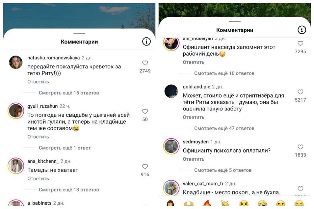 29 мая православные поминали умерших родственников. На Радоницу обычно навещают могилы близких, поминают их в храмах. Но цыганская Радоница - нечто среднее между свадьбой и Пасхальными праздниками.В этот день ромалэ прямо на кладбище накрывают столы, угощают всех желающих присоединиться к их трапезе. Аурика Боц показала, как выглядят поминки по тёте Рите на молдавском кладбище в Кишенёве, и это видео набрало множество просмотров.Пользователи сети удивились размаху мероприятия, на которое даже пригласили официанта. На огромных столах была выставлена еда, напитки. Среди богатой снеди глазастые интернет-пользователи усмотрели даже креветки. Неплохо поминают тётю Риту! Многие даже были готовы присоединиться к этому застолью.В комментариях мнения, как водится, разделились. Одни осуждали столь шумное веселье на кладбище в день поминовения. Другие, напротив, сообщили. что именно так и должны выглядеть поминки, без слёз и печали.