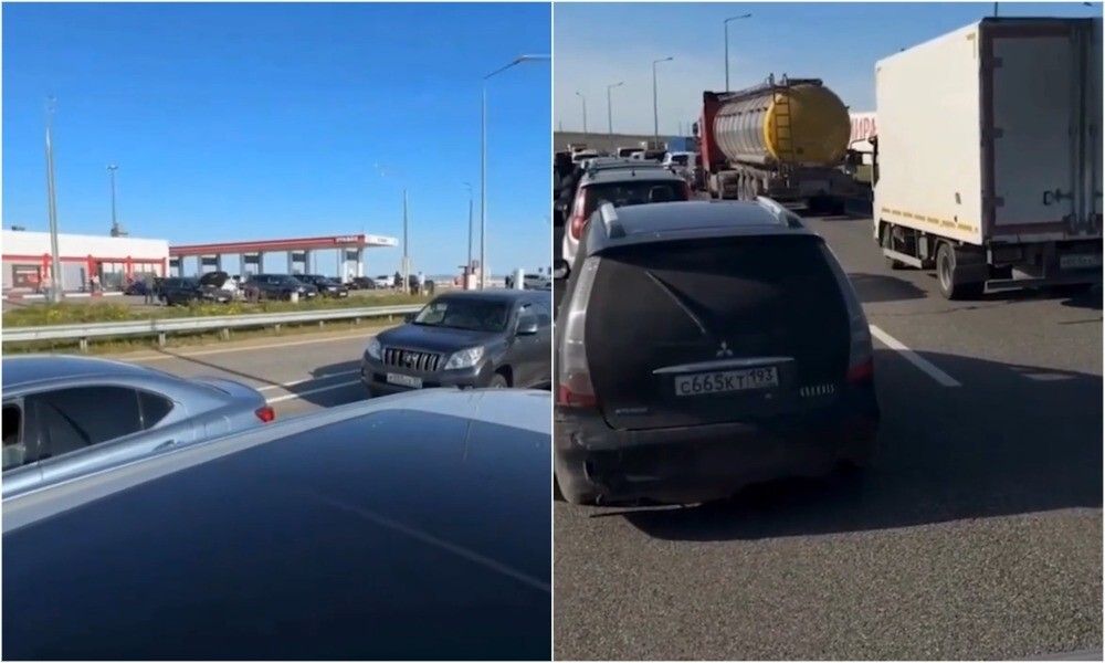 В первый день длинных выходных перед Крымским мостом собралась огромная пробка