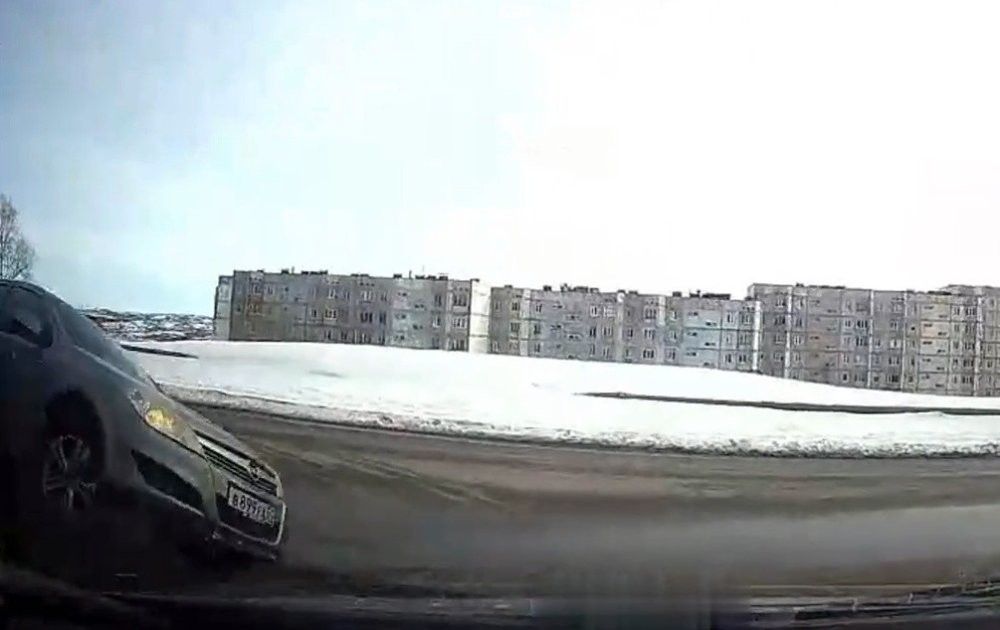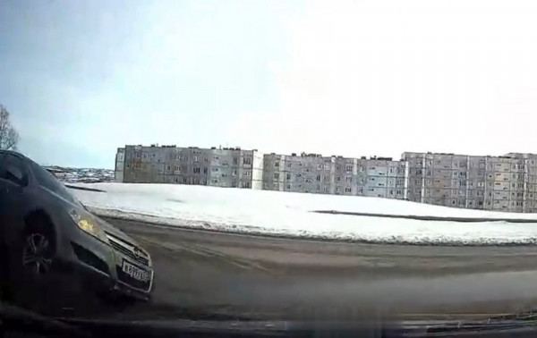 Женщина-водитель автомобиля с регистратором запечатлела интересный момент при выезде с парковки. Сообщается, что никто и ничто не пострадало. Мурманск.