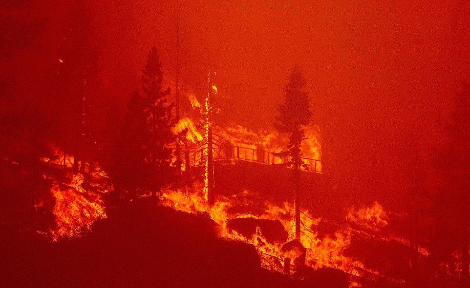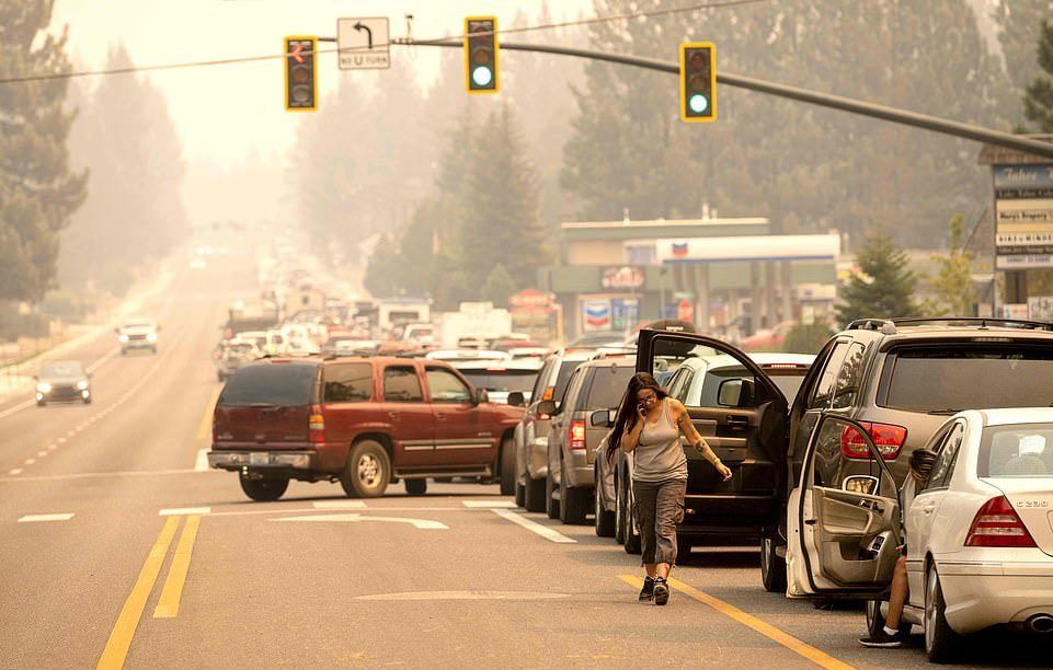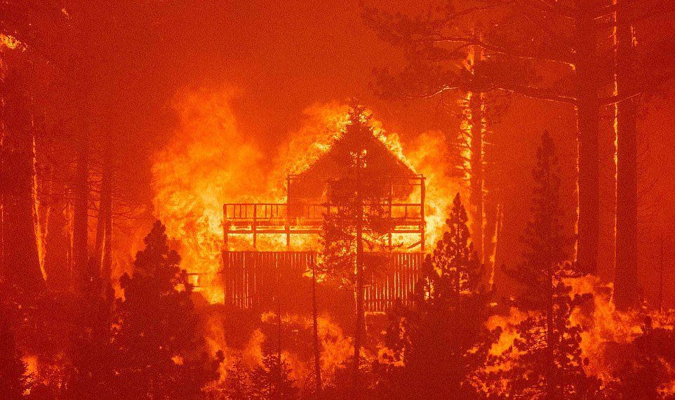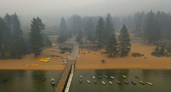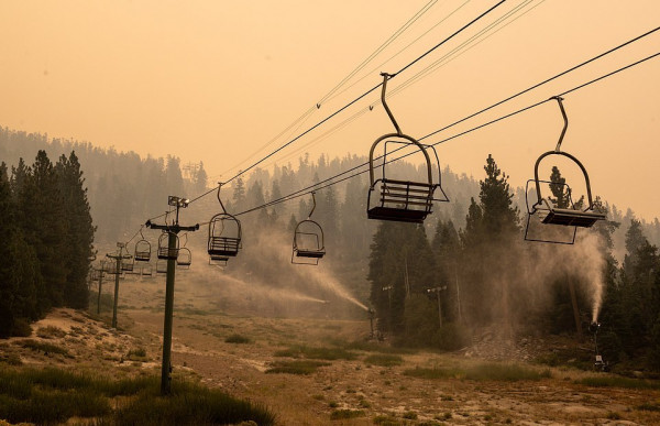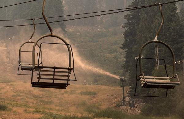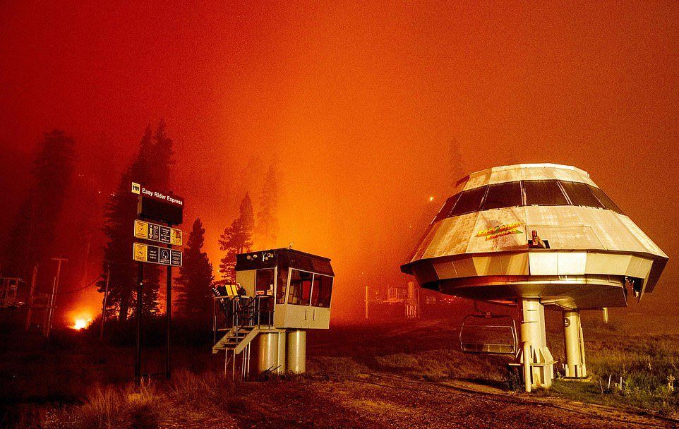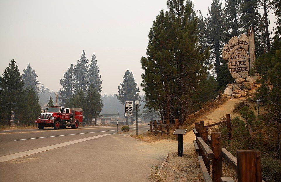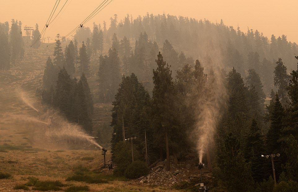 Горнолыжный курорт недалеко от Южного озера Тахо развернул свои снегоуборочные машины, чтобы помочь предотвратить быстро распространяющуюся перестрелку в Калдоре, когда большие куски пепла посыпались на почти безлюдное туристическое место.