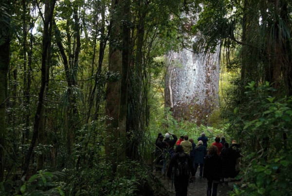 Исполинский каури словно воплощает эту легенду: его могучие ветви простираются к небу, а корни уходят глубоко в землю, соединяя два мира.