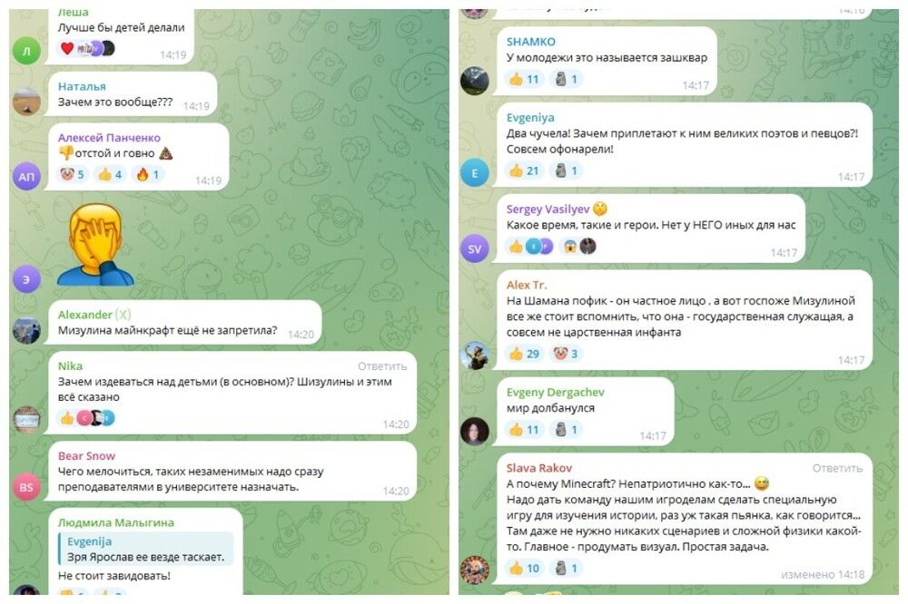 Екатерина Мизулина анонсировала необычное мероприятие, которое пройдёт накануне Дня Победы."8 мая вместе с SHAMAN проведем праздничный стрим в Minecraft, посвященный 80-летию Великой Победы. На стриме зрителей ждут праздничный концерт, виртуальная экскурсия по памятникам и локациям, посвящённым ключевым событиям Великой Отечественной Войны, которые воссозданы в игре. А еще - виртуальные подарки, специальные скины и знаки отличия для участников", - написала глава Лиги Независимого интернета на своей страничке в Телеграм. В 14:00 покажут праздничный концерт, в числе которых выступят виртуальные аватары Булата Окуджавы, Муслима Магомаева, Анны Герман. В соцсетях идею, в основном, не оценили. Интернет-пользователи считают, что попытка привлечь молодёжь похвальна, но исполнение её не выдерживает никакой критики.