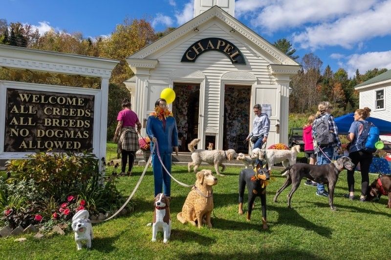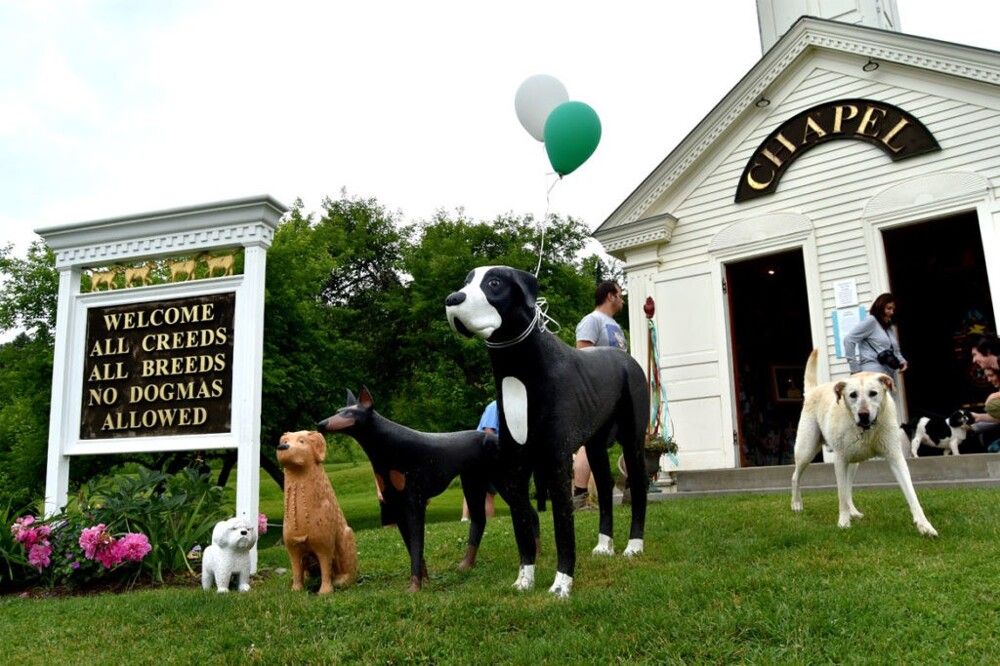 Так вершине Собачьей горы (Dog Mountain), расположенной на его ферме в Сент-Джонсбери, штат Вермонт, появился уникальный храм без догм, но с крылатым лабрадором на шпиле.