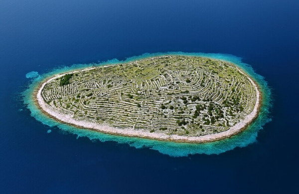 Этот крошечный островок в Адриатическом море площадью всего 0,14 км² включает 23 километра каменных стен.