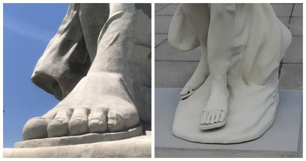 Неизвестно, чем руководствовался скульптор, обувший своё творение во вьетнамки.