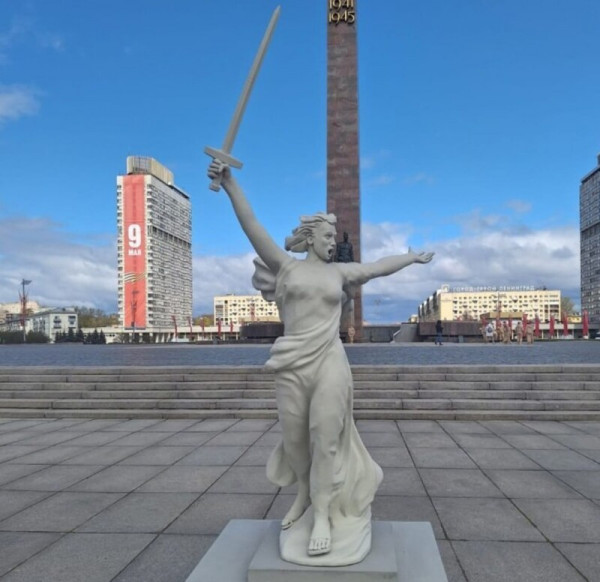 На площади Победы в Санкт-Петербурге установили уменьшенную копию известного монумента "Родина-мать зовёт!". Жители Московского района города удивились необычному исполнению скульптуры: воительница была обута в нечто, напоминающее пляжную обувь. А еще художник стыдливо спрятал монументу грудь.