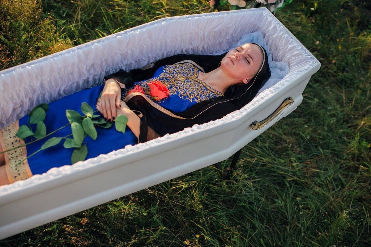 Агентство ритуальных услуг в Украине заявило, что выпустит линейку одежды для покойников. Для рекламы первой такой коллекции агентство уложило фотомоделей в гробы, чтобы получить эффектные кадры. Пользователям продемонстрировали десять фотографий девушек, изображающих покойниц, в платьях разных цветов и фасонов. На нескольких снимках задний план занят ритуальным венком.