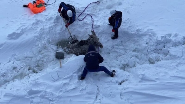 Подробности спасения рассказали в пресс-службе "Атомфлота":12 мая на реке Енисей универсальный атомный ледокол "Якутия" ФГУП "Атомфлот" автономно следовал в направлении портопункта Караул. На Турушинском перекате судоводители заметили на бровке канала лосиху, зажатую льдами."Животное не могло самостоятельно выбраться из ледовой ловушки, - отметил капитан атомного ледокола "Якутия" Дмитрий Никитин. - Мы решили помочь. Остановились, чтобы не покалечить бедолагу, и приступили к спасательной операции". Старший помощник капитана Виталий Менгден, боцман Антон Скорб и матрос Анатолий Кононов вышли на лёд, чтобы попытаться самостоятельно освободить лосиху. Сначала ее откопали, но животное ослабло и не могло вырваться из ледового плена. Тогда пришлось привлечь кран. Матрос Кирилл Ковалев аккуратно поднял животное.Спасательная операция заняла чуть больше тридцати минут. Лосиха направилась в сторону берега, а экипаж продолжил работу по рейсовому заданию.