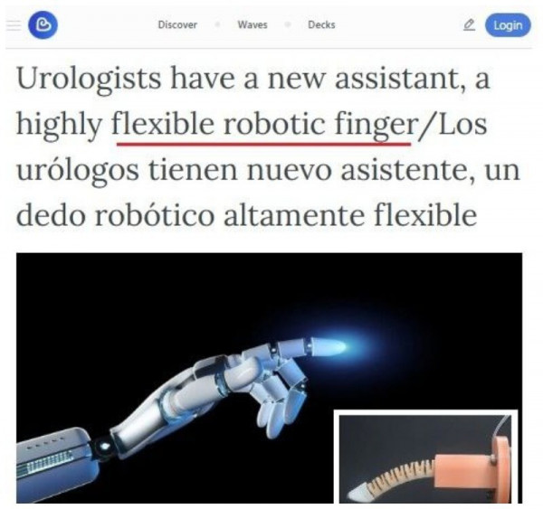 Диагностику предстательной железы необходимо делать регулярно, особенно если возраст перевалил за 50. Не реже 1 раза в год - на предмет ранней диагностики онкологии и прочих неприятностей. Вот только сама эта процедура крайне неприятная и до сих пор проверяется ручным методом, то есть пациента нагибают, и в таком состоянии врач пальпирует железу. А пациент пыхтит, кряхтит, чувствует себя весьма специфически и мечтает, чтобы это все поскорее закончилось. В общем, это настоящая психологическая пытка. Многие даже не ходят к урологу на осмотр единственно по этой причине и в результате запускают опасные болячки.Мужчины боятся идти к урологу, представляя суровых врачей и неприятные процедуры. Тем временем урологи:Китайцы решили, что так жить дальше нельзя и создали робо-палец, но с сенсорами и точной механикой. Робо-палец способен повторять движения врача, ощущать изменения тканей. У пациентов пропадает страх потерять лицо из-за слишком глубинных ощупываний посторонним человеком. Бездушной железяке откровенно все равно на чувства кожаных, более того она еще и диагнозу точнее ставит.