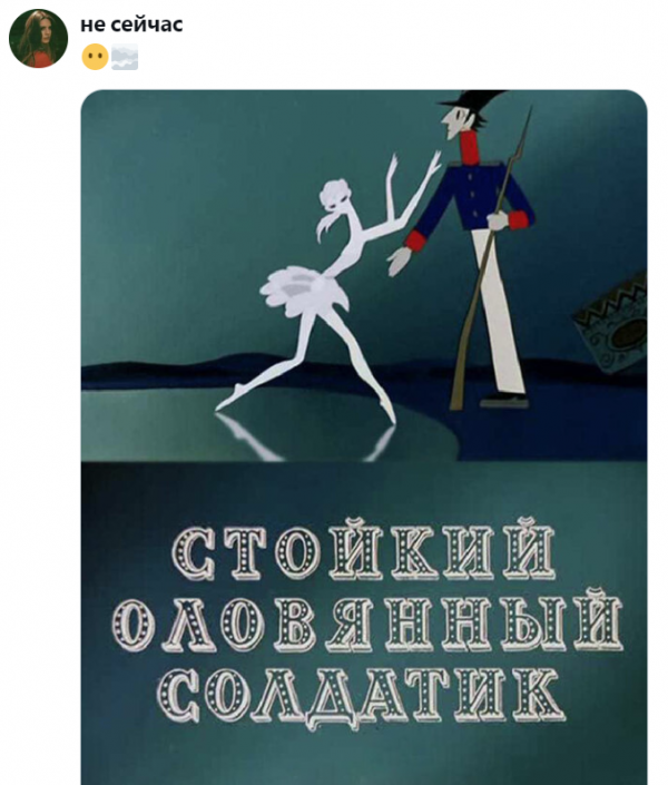 Советская экранизация сказки Андерсена с неожиданно мрачным и трогательным финалом. Одноногий солдатик влюбляется в бумажную танцовщицу, но злобный тролль из табакерки решает разрушить их чувства. Он сбрасывает храбреца в окно, и начинаются испытания: бурный поток, крыса-бандит, щука...Чудом вернувшись домой, солдатик снова видит любимую, но тролль бросает ему под ноги чёрное сердце. В последний миг танцовщица бросается в камин вслед за ним. Их пепел сливается воедино, а тролль рассыпается в прах. Грустный, красивый, поэтичный мультфильм о том, что настоящая любовь сильнее даже смерти. После просмотра хочется перечитать Андерсена и задуматься о вечном...