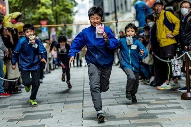 Всё началось с пекарни Kimuraya Sohonten, которая славится анпанами - булочками с бобовой пастой. Они и стали своеобразным спортивным инвентарём. Бежать надо, зажав хлеб в зубах, а перед стартом - ещё и поймать его с крючка без помощи рук. Уронил? Вылетел с дистанции!