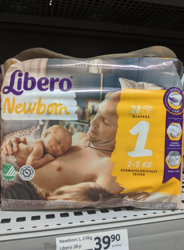 В шведской рекламе подгузники для ребёнка рекламируют мужчины