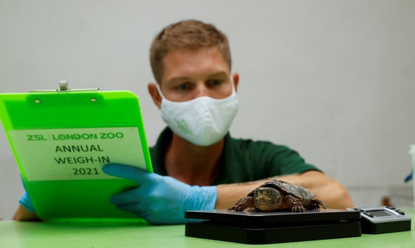 На днях в лондонском зоопарке прошло ежегодное взвешивание животных. Работники зоопарка, в котором обитает более 650 различных видов животных, записали рост и вес всех существ в лондонском зоопарке ZSL. Рост и вес - ключевой показатель общего благосостояния и здоровья местных обитателей.