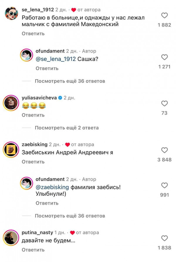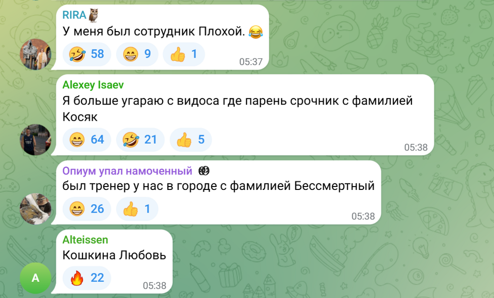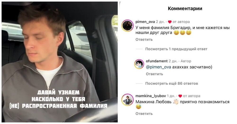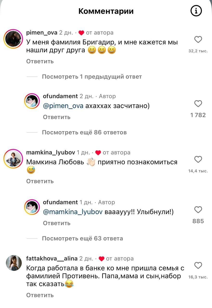 Парень решил поделиться с миром своей необычной фамилией и буквально открыл в комментариях под роликом портал в стендап. Тот момент, когда в одном месте собрались люди с фамилиями, которые вы точно не забудете.