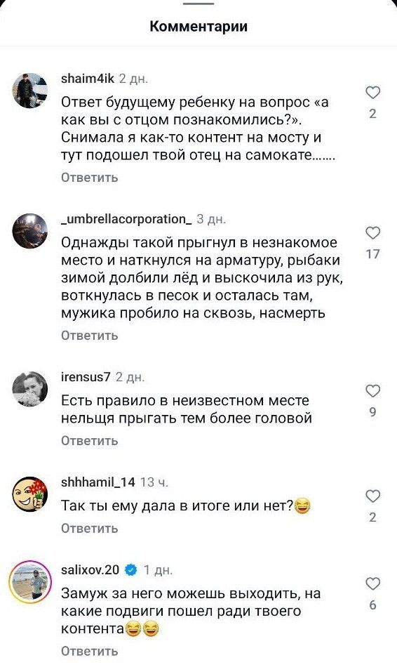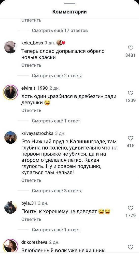 А девушка, опубликовавшее это видео, получила множество комментариев, в которых ей посоветовали выйти замуж за пострадавшего или, напротив, держаться от таких парней подальше.