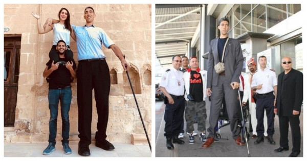 Самый высокий человек в мире Султан Кёсен идёт среди людей стандартного роста. Рост турка составляет 251 сантиметр.