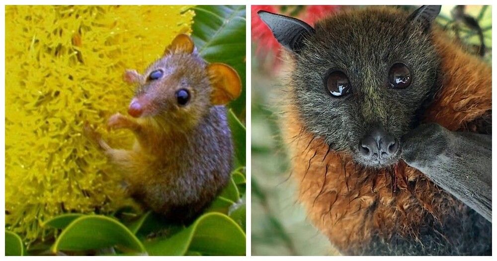Хоботноголовый кускус или поссум-медоед размером чуть ли не с напёрсток (всего 7-9 см) - единственное млекопитающее в мире, которое питается только нектаром.Длинный язык позволяет австралийскому зверьку свободно извлекать нектар из эвкалиптов и банксий. За счёт цепкого хвоста он висит на ветках, как обезьянка, пока лакомится. А после обеда переносит пыльцу на новые цветы, спасая целые леса.
