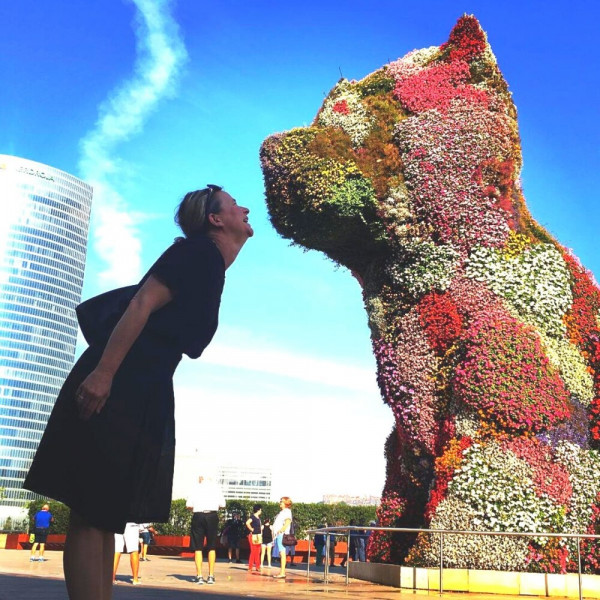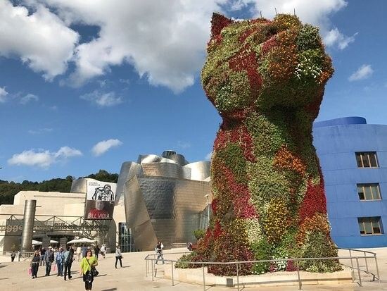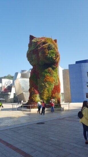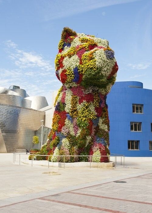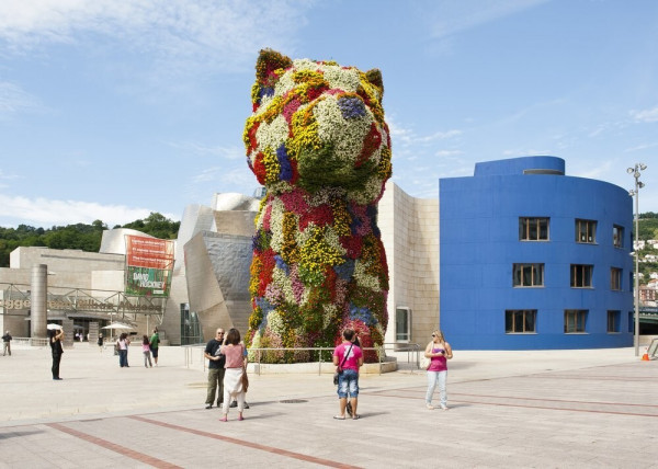 Сначала "Щенок" стоял в Германии, потом - в Австралии, и только в 2005 году нашёл свой постоянный дом в музее Гуггенхайма в Бильбао в Испании. Там он и сейчас радует туристов своей яркой "шубкой" из живых цветов, включающей более 36 тысяч растений.