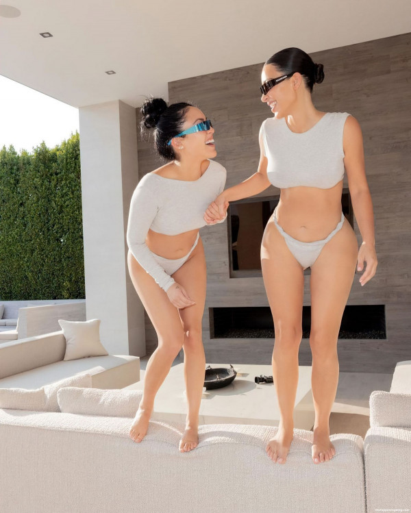 40-летняя американская звезда реалити-шоу, актриса и фотомодель Ким Кардашьян (Kim Kardashian) демонстрирует новую коллекцию SKIMS ‘Twist' с бывшей ассистенткой Стеф Шепард (Steph Shepherd).
