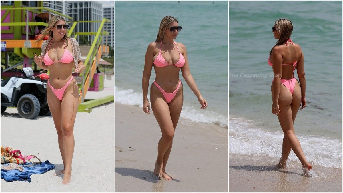 28-летняя американская телезвезда, фитнес-тренер и предприниматель Виктория Ларсон (Victoria Larson) в бикини на пляже в Майами.