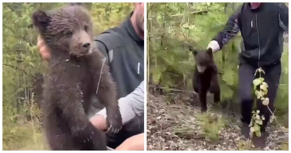 История началась с того, что неизвестные мужчины пытались снять медвежонка с дерева, но тот упал. Затем они подняли животное, посади в мешок, и увезли в неизвестном направлении.Полиция оперативно разыскала мужчин. Оказалось история вовсе не про жестокое обращение с животными.
