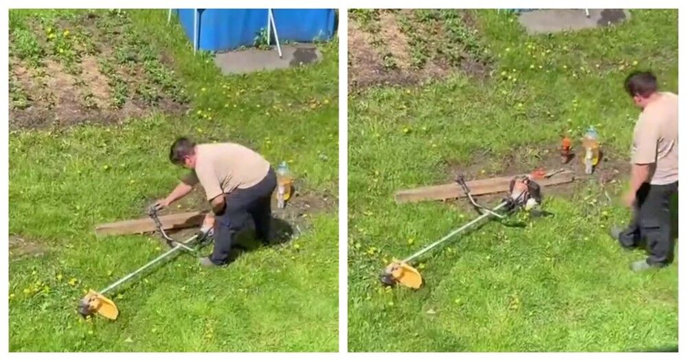 Мужчина хотел скосить одуванчики на участке, однако удача и терпение в тот день были не на его стороне.