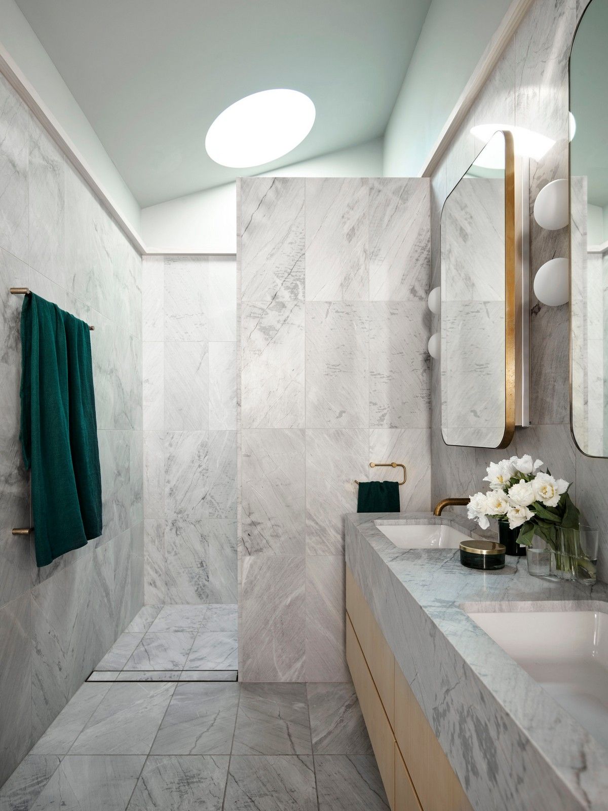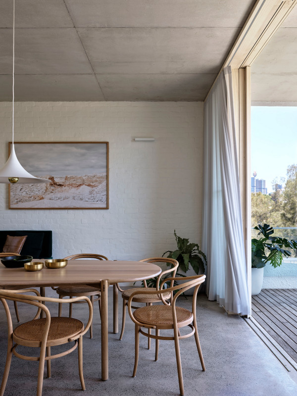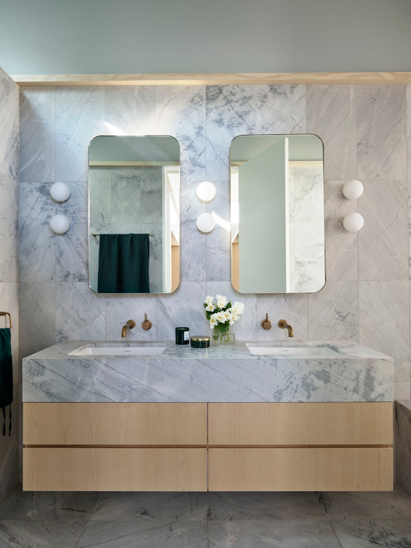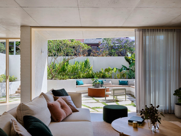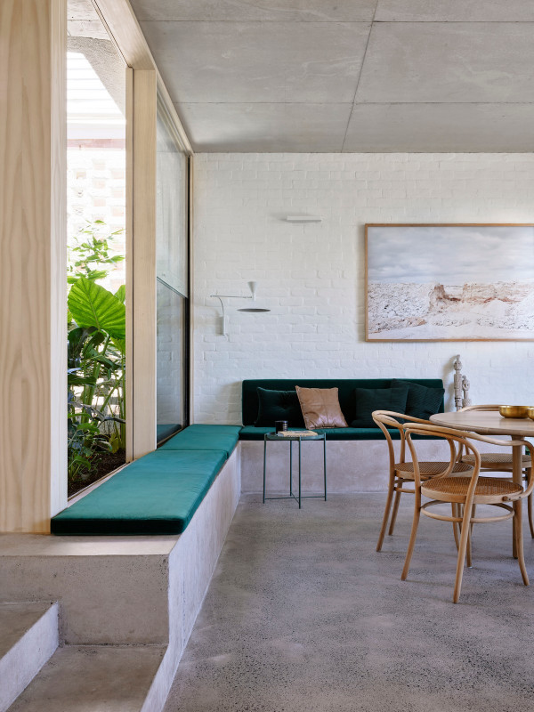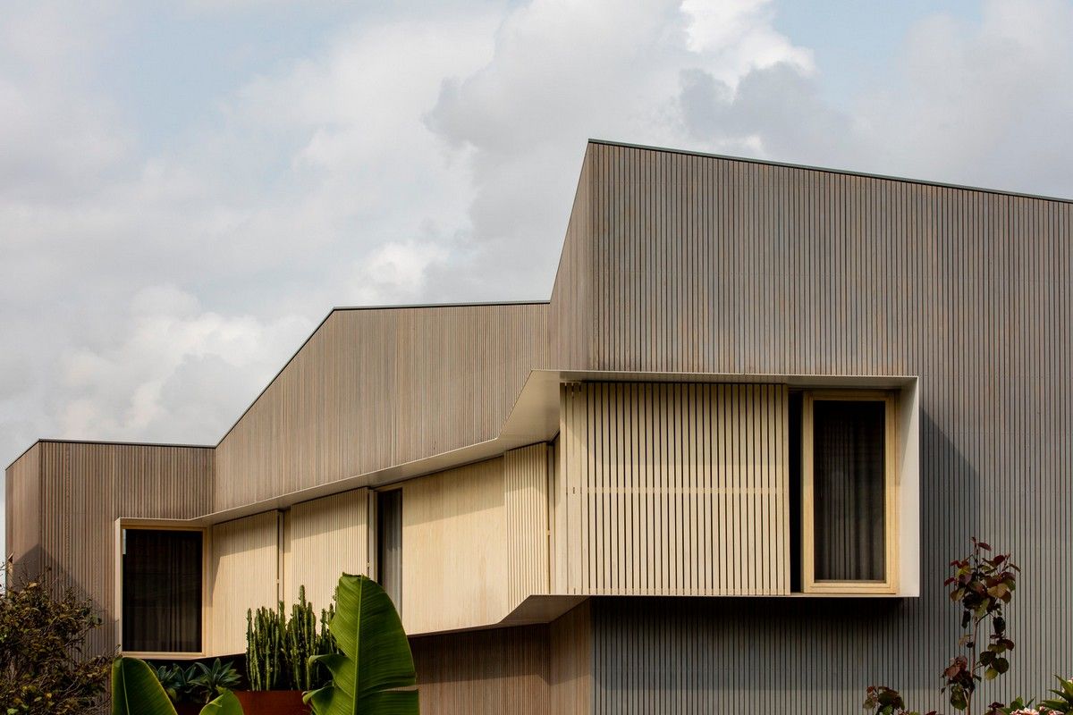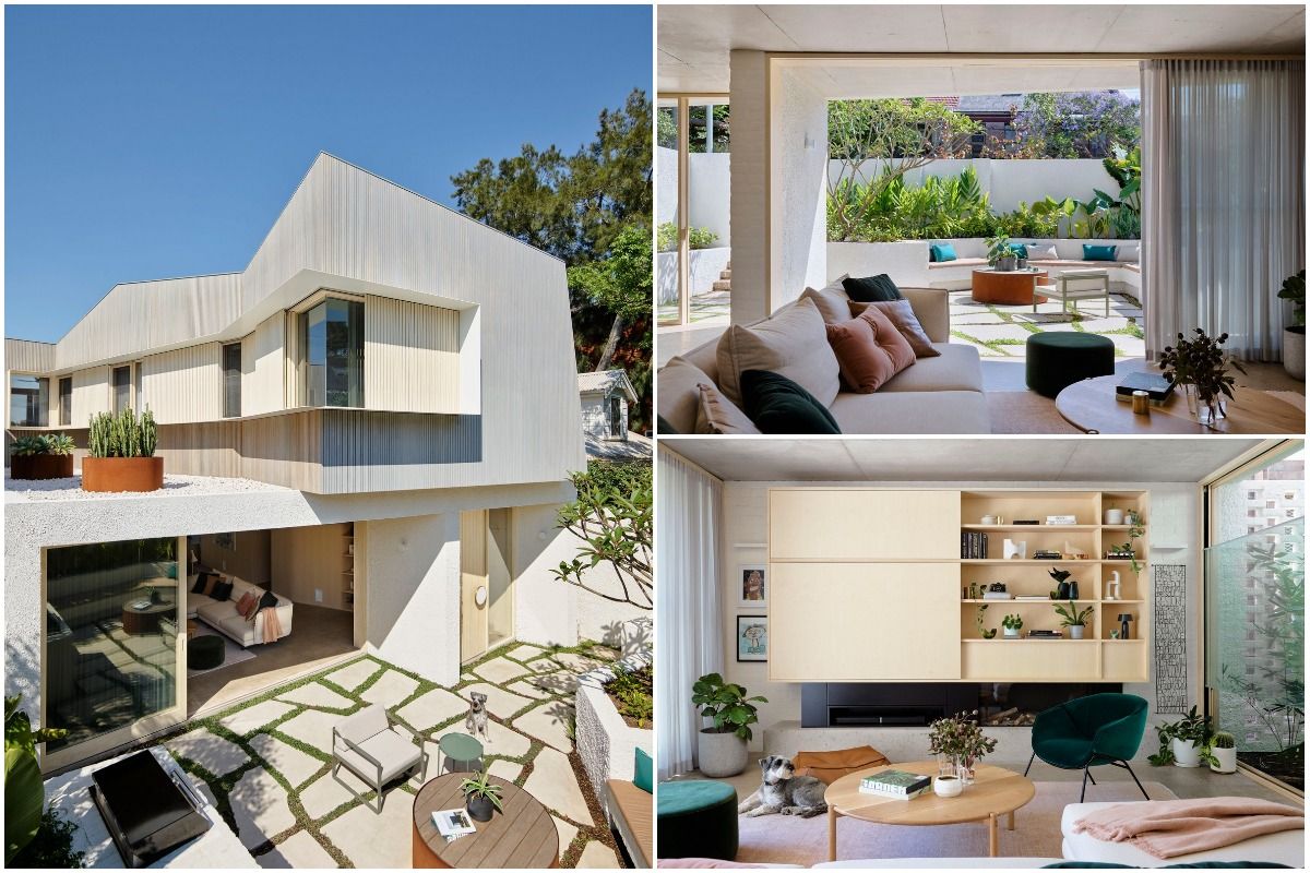 Дизайн четырехуровневого дома площадью 245 квадратных метров включает в себя гараж и два отдельных блока, предназначенных для проживания семьи и для размещения родителей или гостей. Проект стал своеобразной демонстрационной площадкой идей архитектора о комфортной жизни в современном семейном доме.Два верхних этажа занимает семья Эмили, состоящая из четырех человек и собаки. Главная спальня имеет небольшой балкон с роскошным видом на гавань, а из двух детских спален с общей ванной комнатой открываются виды на кактусовый сад. На нижнем уровне с отдельным входом с второстепенной улицы располагаются апартаменты для родителей и гостей. Они включают спальню, кухню, ванную комнату и балкон, а также просторную двухкомнатную квартиру с кухней, ванной комнатой, гостиной и балконом. Нижний этаж может плавно переходить в главный дом или, наоборот, быть заблокирован для уединения, обеспечивая в равной степени связь и приватную жизнь всех жильцов.В проекте используется простая и надежная палитра материалов, отличающаяся низкими эксплуатационными расходами и долговечностью, и, в то же время, имеющая изысканный и красивый вид. В числе доминирующих материалов - бетон, каменная кладка, древесина Accoya и березовая фанера. Бетон и каменная кладка обеспечивают тепловую массу для пассивного охлаждения и обогрева дома, а экраны из натурального дерева фильтруют свет. В отделке первого этажа использован переработанный кирпич, часть которого окрашена, бетонные полы и потолки. Столярные изделия изготовлены из бледной фанеры, оконные и дверные рамы из светлого дерева Accoya. Второй этаж выполнен в более мягкой палитре с доминированием голубых тонов, соответствующих уединенной части дома. В главной ванной комнате пол и стены облицованы полированным мрамором Artedomus Elba.Особое внимание в проекте уделено связи интерьера и экстерьера. Для создания эффекта единого живого пространства были созданы три внутренних двора и террасы, которые обеспечивают плавную связь помещений и окружающей среды.Главной особенностью проекта является его экологически устойчивый дизайн, позволяющий значительно снизить потребление энергии и естественным образом регулировать температуру в помещениях. Устойчивые конструктивные особенности включают в себя солнечные панели на крыше, позволяющие вырабатывать до 92% необходимой для эксплуатации здания электроэнергии. Проект также предусматривает системы сбора дождевой воды и рециркуляции сточных вод. Полы в доме имеют водяной подогрев. Раздвижные деревянные перегородки из древесины кедра на окнах и широкие свесы на верхнем уровне защищают стеклянные фасады от перегрева.