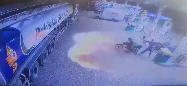Снято в окрестностях города Сваби в Пакистане. По всей видимости нарушение ТБ привело к такому результату и если бы не мопед, то кто-нибудь другой всё это запустил. Смотреть до конца, там и бензовоз пришлось тушить.