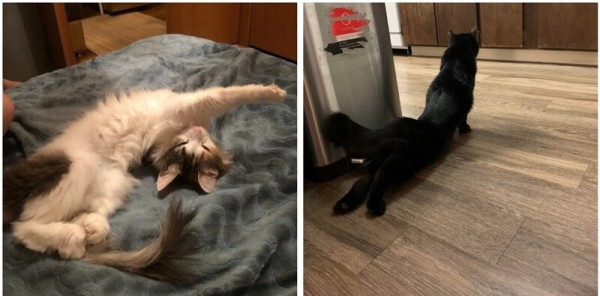 Наши обожаемые питомцы настолько гибкие создания, что заслуживают звания настоящих гуру растяжки. Обычные домашние котики легко превращают диван в фитнес-зал, а любое сердце - в тающее мороженое.