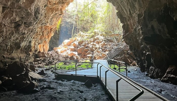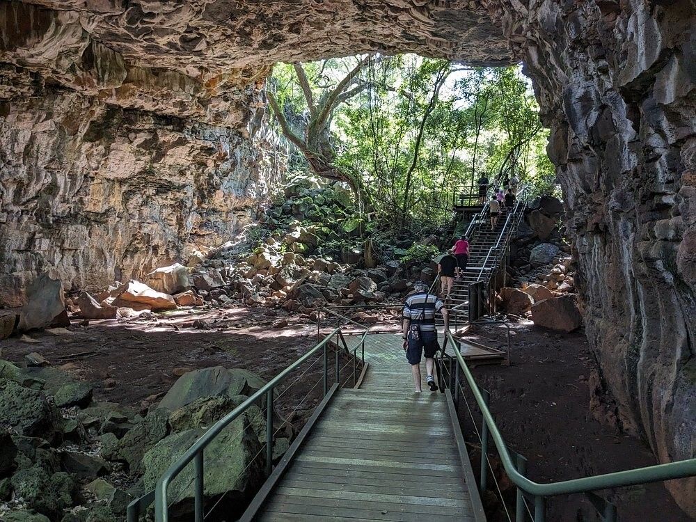 190 000 лет назад вулкан Ундара проснулся на ровном как стол плато Квинсленда. Его лава (1 220°C) растеклась на 1 550 км² - рекорд для одиночного извержения. Внешние слои лавы остывали быстрее, образуя корку. Раскалённая сердцевина продолжала течь, формируя пустоты - как шоколадная глазурь с жидкой начинкой. Самый длинный туннель протянулся на 100 километров.