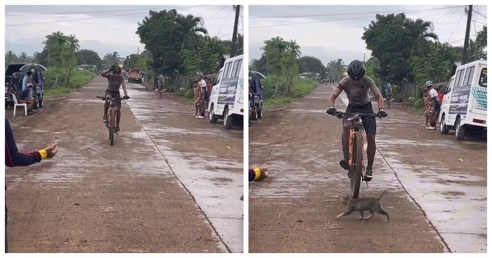 На Филиппинах велогонщик совершил невероятный прыжок, чтобы в последнюю секунду спасти кота