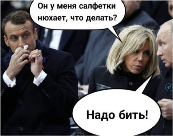 Для тех, кто пропустил, в понедельник Макрон выхватил знатного леща от жены во время совместного визита во Вьетнам в рамках тура по Юго-Восточной Азии. Более подробно читаем здесь.Естественно, оплеуху и мужественно сжатый кулак французского президента тут же опровергли близкие друзья и все в этом заинтересованные, но мемоделов было уже не остановить.
