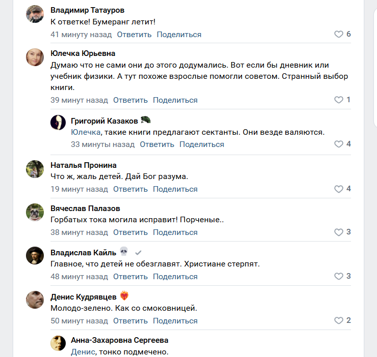 В Липецке группа подростков, видимо, решила привлечь к себе внимание. Зумеры, хихикая и матерясь, зашвырнули в реку Новый Завет, снимая действо на камеру. Видимо, в чьей-то голове мелькала мысль о том, что они совершают недостойное, потому что одна из девочек повторяла, что их теперь "точно зарежут".Акт религиозного вандализма, по сообщениям СМИ, произошёл в Сокольском парке города. Местные жители просят правоохранителей обратить внимание на акт богохульства и привлечь деток по статье 148 УК РФ.