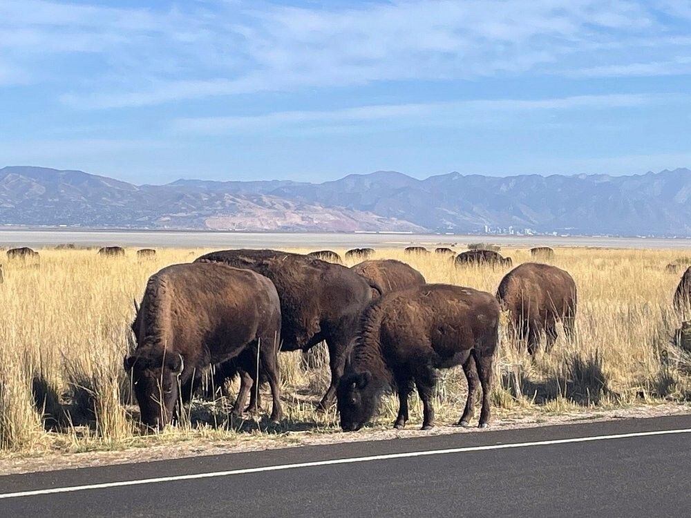 Каждый год на острове проходит гонка бизонов: животных загоняют в загоны, проверяют и продают излишки стада. А в нескольких километрах от берега лежит "Спиральная дамба" - гигантская земляная скульптура Роберта Смитсона, уходящая в солёные воды.