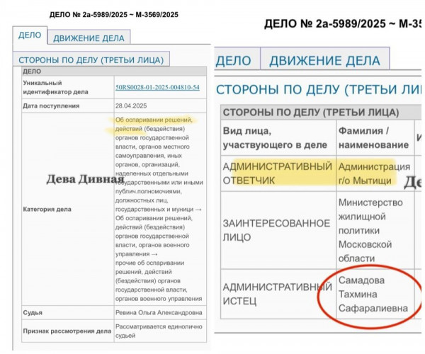 Резонансная история с таджикской семьёй из Мытищ получила продолжение. Точнее, она продолжается ещё с января нынешнего года, но недавно стало известно, что сдаваться чета Тахмины Самадовой Рамазона Рахимова так просто не намерена. И более того, хочет вернуть незаконно выданный сертификат на 24 млн рублей.Как предполагает активистка Александра Матвейчук, иск нуждающейся семьи к администрации города был подан в сговоре с чиновниками, которые очень не хотят в колонию."Как сообщают, это совместная тактика Тахмины и замаранной администрации города Мытищ. Прокуратуре хорошо проплатили за противодействие Следственному комитету и она отменила около 10 постановлений о возбуждении уголовных дел. Формулировки просто абсурдные "нет состава преступления" и "следователь не полностью провел процессуальную проверку". Но так как Прокуратура не может постоянно противостоять СК, они подали в суд, чтобы получить решение суда в пользу чиновников и Тахмины и перевести дело из уголовного в административное. Если суд вынесет такое решение, возбудить уголовное дело СК будет невероятно сложно", - пишет активистка.