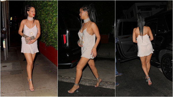33-летняя барбадосская певица, актриса, музыкальный продюсер, модный дизайнер и филантроп Рианна (Rihanna) в сексуальном платье покидает ресторан Giorgio Baldi в 6 утра в Санта-Монике.