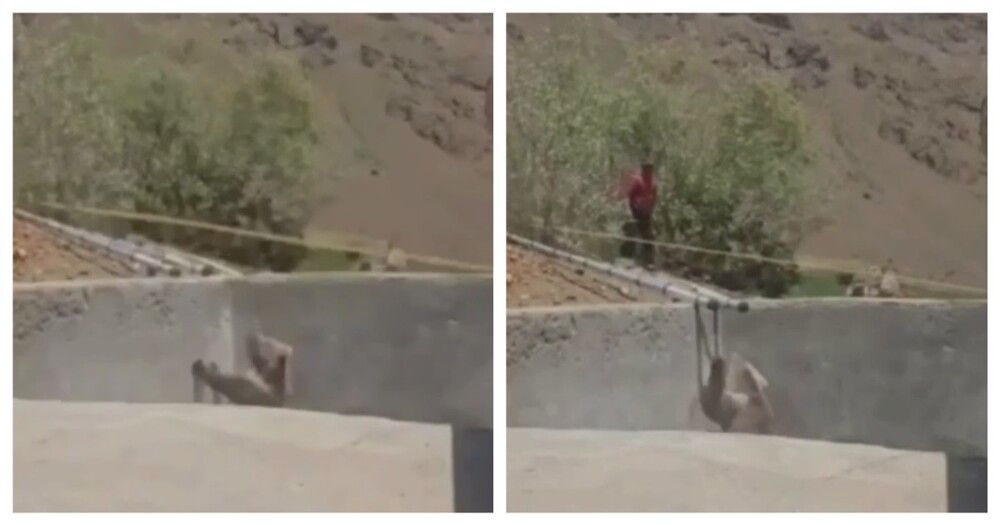 Медведь попал в бетонную ловушку в Дагестане и не мог из неё выбраться. На помощь пришли местные жители.