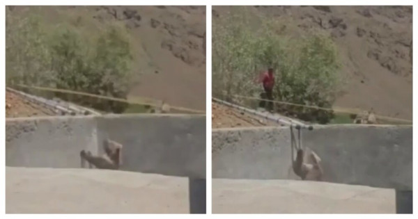 Попавший в бетонную тюрьму в Докузпаринском районе мишка сильно переживал: пытался выбраться, прыгал, ругался и сопел. Люди тоже сильно переживали - прежде всего за свою жизнь, а потом - уже за мишку. Животному кинули лестницу. Медведь быстро смекнул, как её использовать, и как можно скорее убежал из деревни.