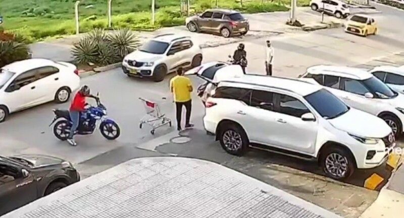 В колумбийском городе Барранкилье предприниматель (в желтой футболке), открыл огонь по грабителям, а потом скрылся. Инцидент попал на видео.