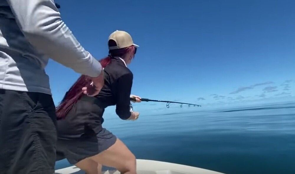 Во время рыбалки у побережья города Маккай (штат Квинсленд, Австралия) один из путешественников снял на видео, как девушка решила испытать себя в рыбалке, но что-то пошло не по ее плану,