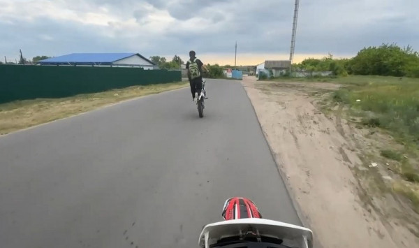 На питбайке на заднем колесе по встречной в закрытый поворот. Что же могло пойти не так?