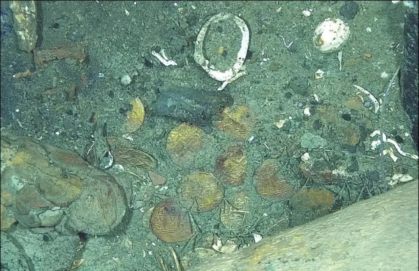Исследователи, в том числе эксперты военно-морских сил Колумбии, изучили снимки, сделанные дистанционно управляемыми аппаратами, на которых изображены десятки монет, разбросанных вокруг затонувшего корабля на глубине почти 2000 футов (примерно 610 метров). Авторы исследования заявили, что точное количество монет на морском дне трудно определить "из-за динамичной природы места". Но анализ изображений высокого разрешения, полученных с помощью дистанционно управляемых аппаратов, показал, что средний диаметр каждой монеты составляет 32,5 миллиметра, а вес - около 27 граммов.На некоторых монетах исследователи смогли разглядеть буквы PVA - это латинский девиз, означающий Plus Ultra, или "Дальше больше". По словам авторов исследования, эта поговорка использовалась на монетах для обозначения экспансии испанской монархии в Атлантике. Также можно было увидеть цифры, обозначающие номинал монет и дату чеканки (1707 год).Ученые отмечают, что монеты этого периода часто вырезались из золотых или серебряных слитков.В августе прошлого года колумбийские власти заявили, что один дистанционно управляемый аппарат обследовал затонувшее судно, обнаружив множество артефактов, включая якорь, кувшины и стеклянные бутылки.