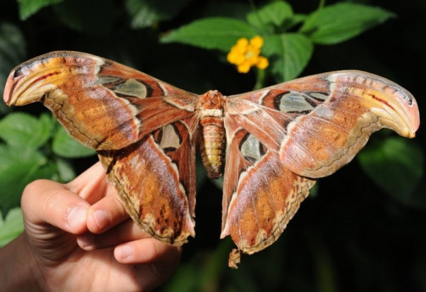 Зато гиганты превышают размер ладони. Североамериканский цекропийский мотылёк достигает 18 см в размахе, а азиатский атласный мотылёк - 27 см. Но и это не предел: южноамериканская "белая ведьма" и новогвинейский мотылёк-геркулес могут вырастать до 28 см.